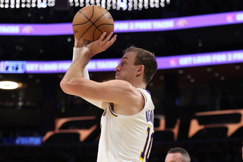 交易截止日2换1加盟湖人至今,肯纳德出战10场比赛,场均可以拿下10.2分2.5板2.1助,三项命中率达到180俱乐部的61/48/91%,同时真实命中率74%。